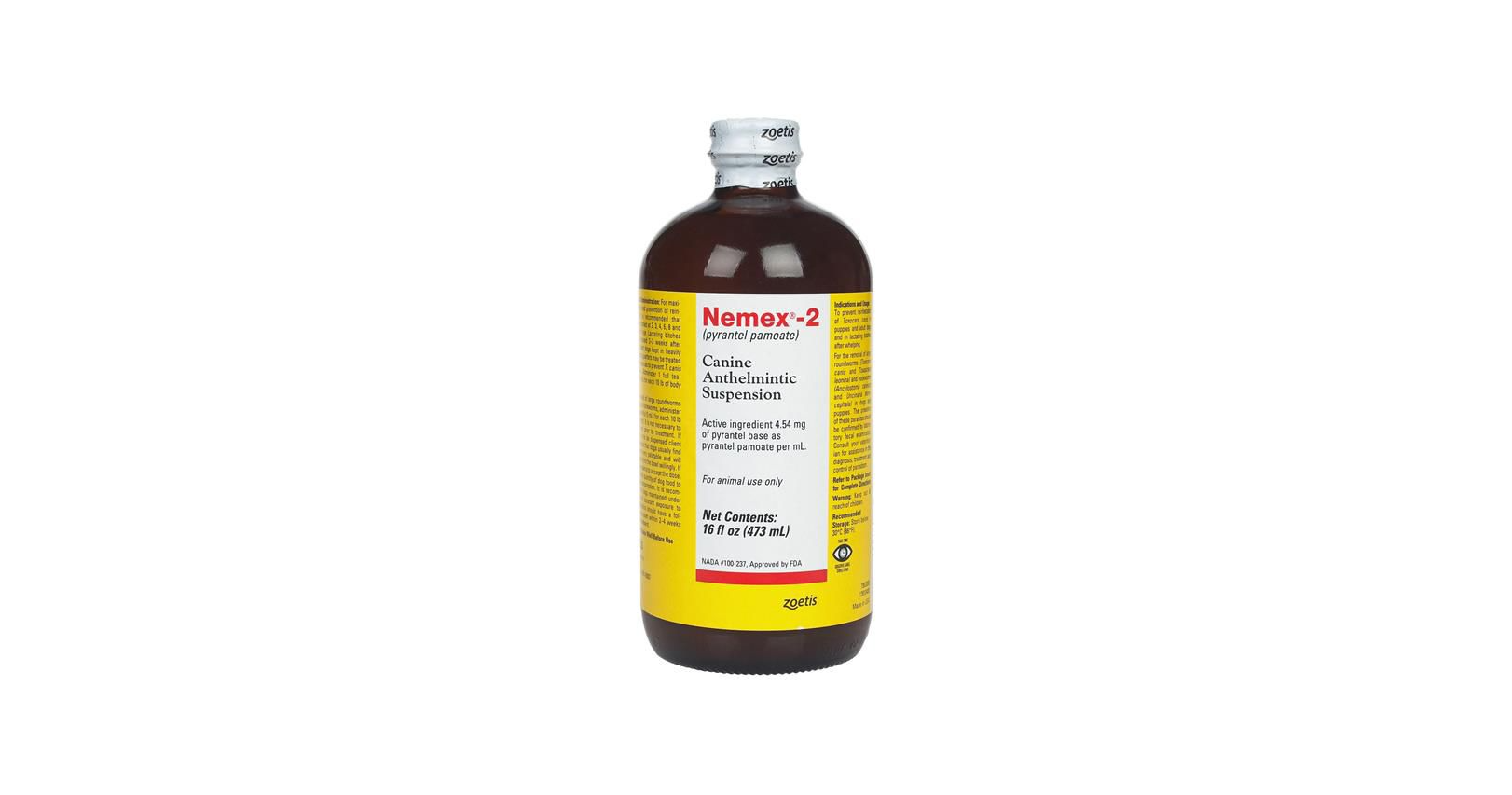• Available in 2 fl. oz. (60 mL) and 16 fl. oz. (473 mL) sizes of Nemex-2 liquid for dogs