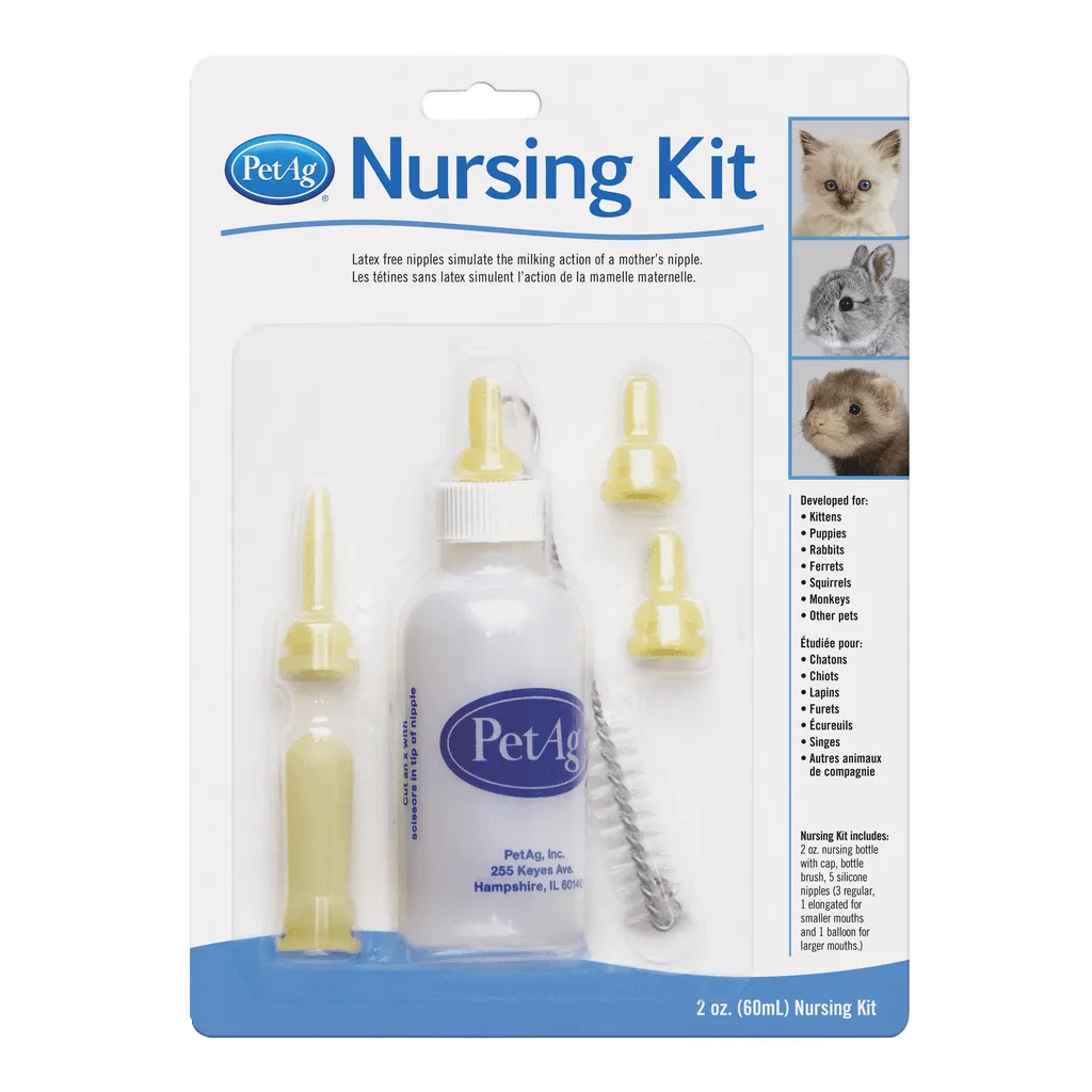 Bottle and nipple specially designed for small babies: 2 oz. for small animals. Bottle feeding allows animal to refuse formula when full. Nursing action develops facial muscles and stimulates the normal flow of saliva.